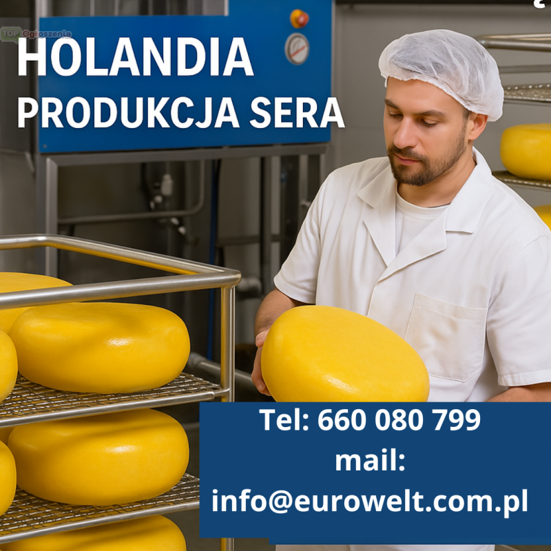 - Praca fizyczna przy produkcji sera (m.in. dostarczanie sera do maszyn, obieranie, obsługa maszyn)